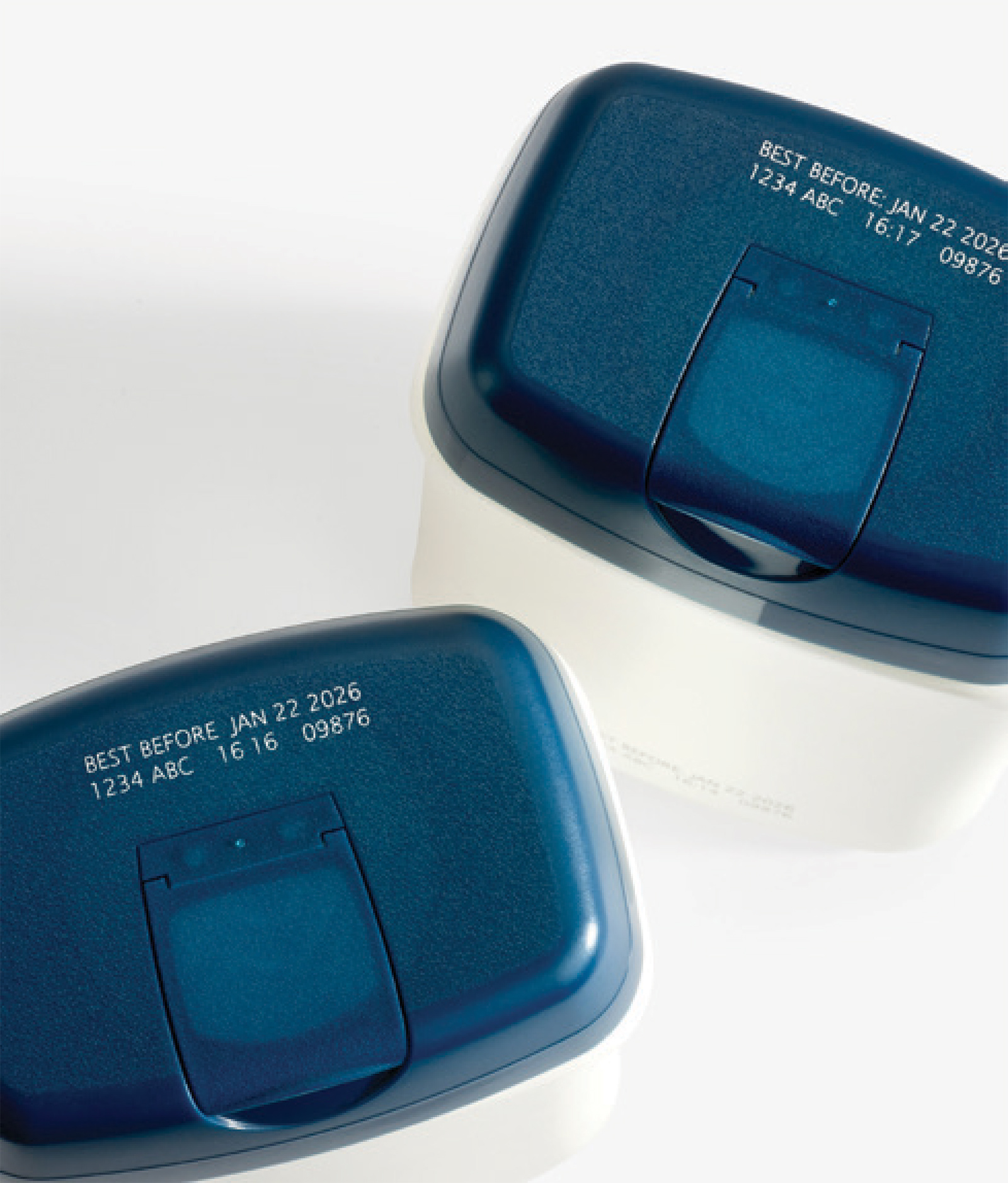 - Tlač bez obmedzenia riadkov textu (len značenou plochou) s kombináciou grafiky, loga, čiarového kódu, 2D kódu, dátumu spotreby, času, šarže, počítadla, interné kódy