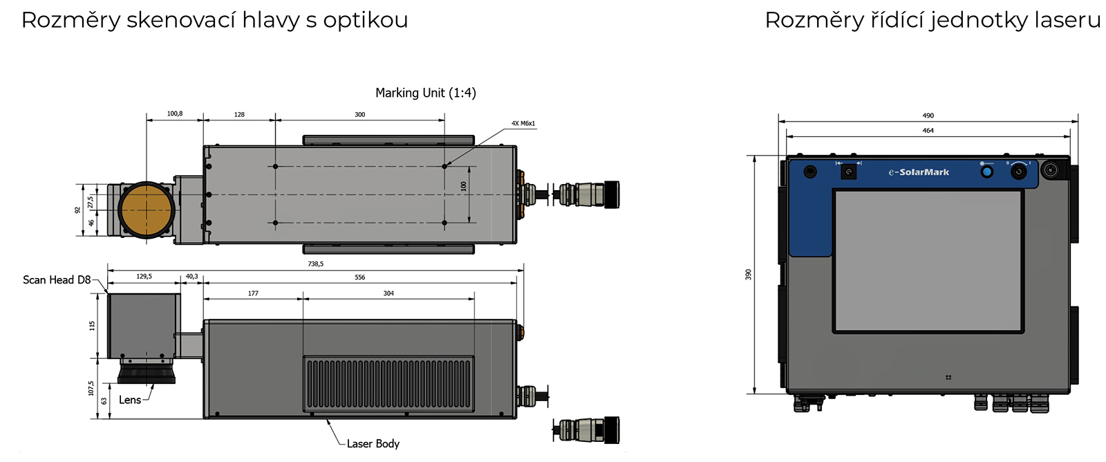 | Celková dĺžka prepojovacej sústavy medzi riadiacou jednotkou a laserom: | 3 m |